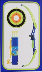 Ovaj komplet za male streličare sadrži sve što djeci treba za siguran trening ciljanja: plastični luk duljine 70 cm, 3 strijele s vakuumskim čepovima, tuljak za strijele preko ramena i šarenu metu. Zahvaljujući vakuumskim čepovima, strijele se sigurno pričvršćuju na glatke površine, pa je igra prikladna i za dječju sobu i za dvorište.