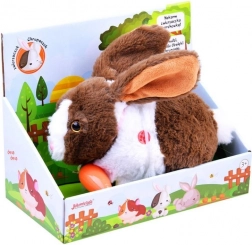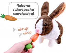 Priložena mrkvica pokreće zvuk grickanja i potiče interakciju djeteta sa životinjicom kroz brigu i igru.