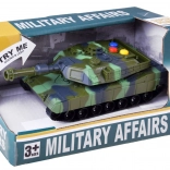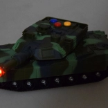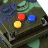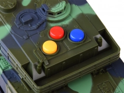 Vojni tenk izrađen je od kvalitetne plastike koja osigurava realističan izgled i izdržljivost. Tenk je opremljen s tri obojena gumba koji simuliraju realistične zvukove poput vožnje, pripreme i ispaljenja projektila te sirene. Svakim pritiskom na gumb doživjet ćete autentičnu atmosferu borbene akcije.