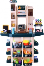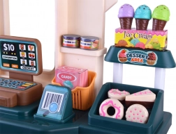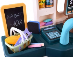 Set nudi realistične elemente za naprednu igru trgovine. Djeca mogu koristiti prijenosni skener kodova i čekati u redu kao u pravom supermarketu.