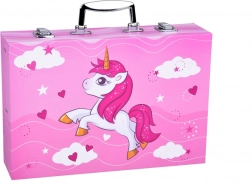 Kofer0d sa zaigranim dizajnom jednoroga koji se lako prenosi zahvaljuju7i metalnoj ru0dki.