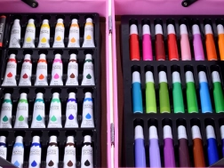 Set sadrei boje, kistove, pastele i mnogo vi1e, idealan za stvaranje razliditih umjetni0dkih djela.