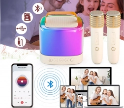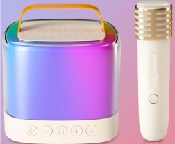 Uživajte u zabavi bilo gdje zahvaljujući prijenosnom bežičnom mini zvučniku s dva mikrofona. Ovaj sjajni set omogućuje pjevanje u paru ili solo zahvaljujući dvama mikrofonima. Zahvaljujući kompaktnim dimenzijama lako ga nosite na igralište, izlet ili kod prijatelja i napravite sjajnu diskoteku. Mogućnost povezivanja preko bluetootha dopušta vam pjevanje karaoke direktno s vašeg telefona.