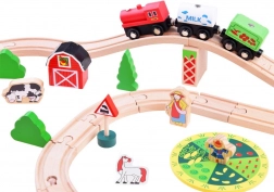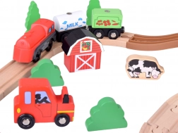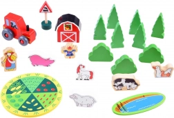 Set uključuje autentične elemente farmi kao što su štala, traktor i razni likovi životinja, koji omogućuju djeci stvaranje vlastitog svijeta na farmi.