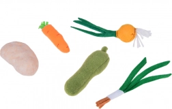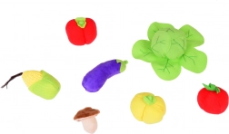Set sadrži raznobojno povrće poput mrkve, rajčice, patlidžana i mnogo drugoga, koje privlači pažnju svojim bojama i oblicima.