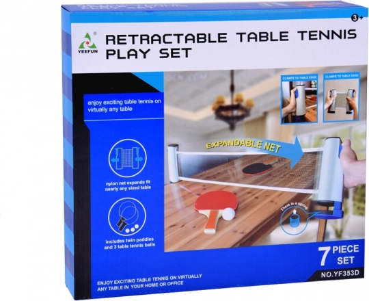 Ovaj kompletan set možete ponijeti bilo gdje i uživati u satima zabave. Dovoljno je imati dostupnu površinu stola i možete početi igrati. Set sadrži podesivu mrežicu, dva reketa i tri loptice. Zahvaljujući mogućnosti regulacije mrežice može se pričvrstiti gotovo na svaku ravnu površinu i odmah započeti igra stolnog tenisa. Set ne zauzima mnogo mjesta i izvrstan je izbor za odmor ili putovanja.