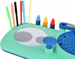 - 49 dijelova – sadrži kolor flomastere, boje, rotirajuću platformu i šablone za spirograf.