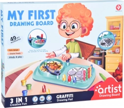 My First Drawing Board donosi kombinaciju zabave i učenja, omogućuje razvijanje mašte i fine motorike djece. Zahvaljujući ovom setu svaki mali umjetnik može stvarati jedinstvene crteže i uzorke bojama ili flomasterima.