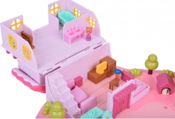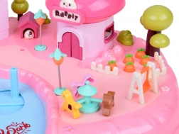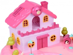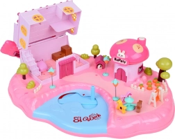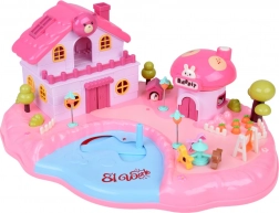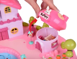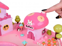Kućica nudi višerazinski interijer sa scenama za svakodnevnu igru: udobna spavaća soba s krevetom, ormar koji se otvara, kupaonica s kadom i umivaonikom, kuhinjica s hladnjakom te toaletni stolić. Svjetlosni i zvučni efekti aktivirani gumbima pojačavaju atmosferu igre, a pozadinski osvijetljen natpis RABBIT reagira u ritmu melodije.