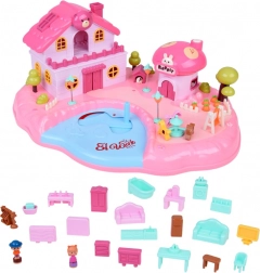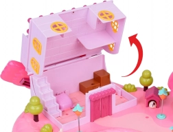 Otkrijte čarobnu kuću u vrtu: otvorena kućica s trgovinom u obliku muhara, jezerom s upravljačem i igralištem poziva djecu na beskrajno pripovijedanje. Skrivena magnetska indukcija pokreće figurice i detalje scene – dovoljno je pomicati upravljač na jezeru i pustiti ih da krenu u vrt, na igralište ili u trgovinu.