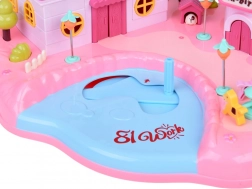 Skrivena magnetska indukcija pokreće figurice po sceni. Pomičite upravljač na jezeru i gledajte kako junaci kreću u vrt, na igralište ili u trgovinu.