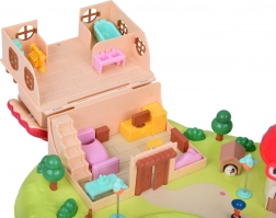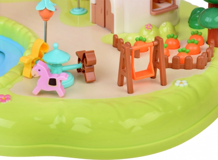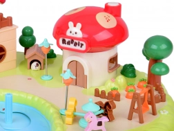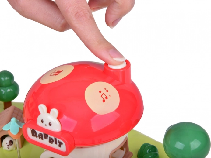 Ova interaktivna magnetska kućica stvara raznoliku igraću scenu s vrtom, jezercem i gljivarnicom. Djeca uz pomoć upravljačke palice na plavom jezercu pomiču figurice koje se zahvaljujući magnetnoj indukciji glatko kreću po cijeloj sceni – od gredice s mrkvom preko igrališta pa sve do posjeta kućnom ljubimcu. Kućica u obliku gljive ima funkcijske tipke za svjetlosne i zvučne efekte te stilski natpis „Rabbit” koji svijetli u ritmu.