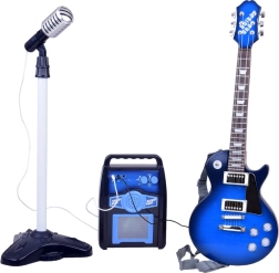 - Električna gitara (plava), stalak za mikrofon s mikrofonom, pojačalo, remen za gitaru, jack kabel