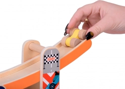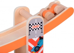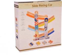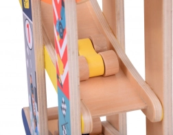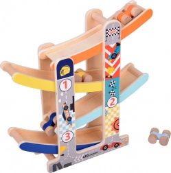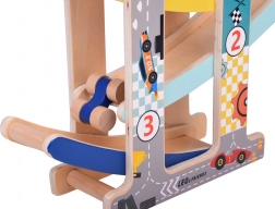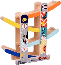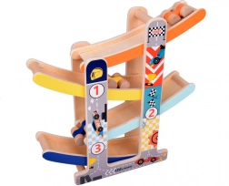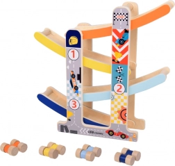 Ova robusna drvena staza s toboganom za autiće donosi djeci i zabavu i učenje u jednom. Zahvaljujući četirima šarenim razinama i četirima drvenim autićima, djeca uživaju u dinamičnim spuštanjima te pritom vježbaju finu motoriku, koordinaciju oko–ruka i načelo uzrok–posljedica. Igračka je spremna za upotrebu odmah nakon raspakiravanja – bez montaže.