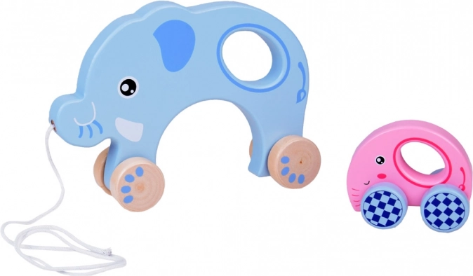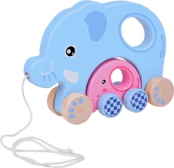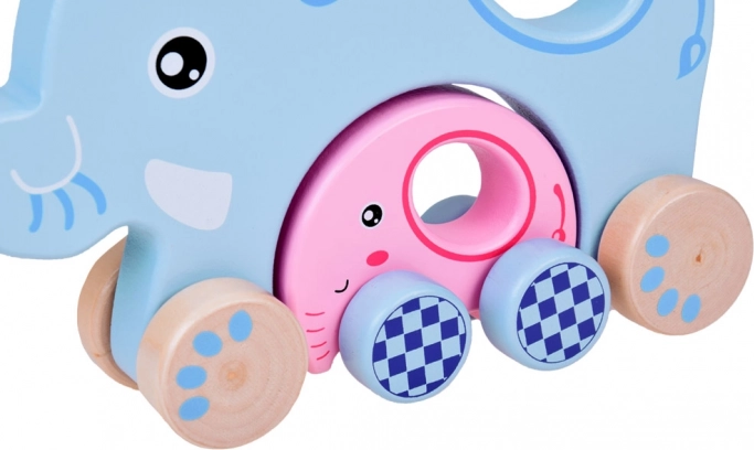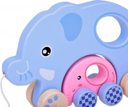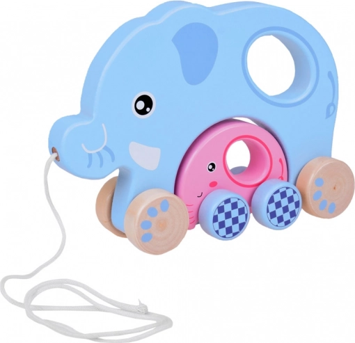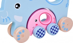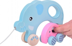 Ovaj drveni vučni slon u nježnim pastelnih bojama razveselit će svako dijete koje otkriva svijet hodanja. Veći plavi slon u sebi nosi manjeg ružičastog slonića, koji se pri kretanju vjerno „vozi” s mamom. Igračka je glatko obrađena i ugodna na dodir, pa je sjajna za male istraživače.