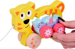Igračka je izrađena od izdržljivog drva u pastelnim bojama koje privlače, ali ne ometaju. Odličan je poklon za mališane – donosi zabavu, potiče ravnotežu, koordinaciju oko–ruka i uči povlačenje i vođenje igračke u pravom smjeru.