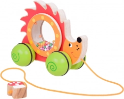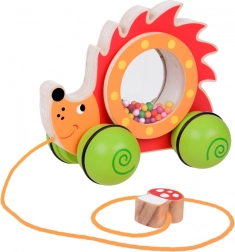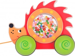 Preslatki drveni ježić na kotačićima s prozirnim bubnjem punim kuglica savršen je pratitelj za prve korake. Pri povlačenju se kuglice u trbuščiću veselo vrte i zveckaju, što motivira djecu na kretanje. Igračka ima stabilnu konstrukciju, netoksične boje i praktičnu uzicu s muharaom za lako povlačenje.