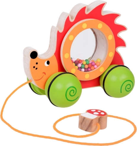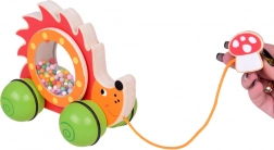 Drveni vučni ježić potiče prirodan razvoj djece – od prvih koraka do razvoja fine i grube motorike. Pri vožnji se unutar prozirne komore okreću šarene kuglice koje stvaraju vizualni i zvučni efekt te zadržavaju dječju pažnju.