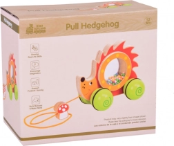 Zahvaljujući širokom razmaku kotačića ježić je stabilan i lako upravljiv. Igračka je izrađena od izdržljivog drva i obojena sigurnim, netoksičnim bojama, pa je prikladna i za najmlađe istraživače. Narančasta uzica s drvenim muharaom olakšava hvatanje i povlačenje.