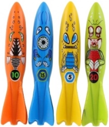 Lako i izdržljivo ronioće torpedo dizajnirano je tako da pri bacanju u vodu glatko tone te je zahvaljujući živim bojama lako uočljivo. Djecu motivira na unapređenje plivačkih vještina, trening ronjenja na dah i koordinacije pokreta.