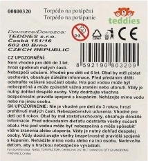 Proizvod se isporučuje na kartici dimenzija 17 × 18 × 2 cm i odlično je rješenje za bazen i putovanja. Jednostavna uporaba, siguran oblik i idealna veličina čine torpedo savršenim dodatkom za aktivnu vodenu zabavu.
