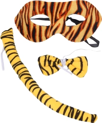 U trenu se pretvorite u neukroćenu zvijer! Ovaj karnevalski set sadrži sve potrebno za brzu i zabavnu preobrazbu – masku, rep i leptir-mašnu. Idealan za karneval, dječje rođendane i tematske zabave.