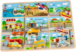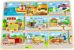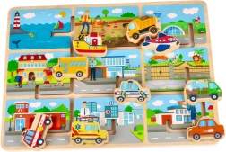 Pažljivo osmišljena slagalica osigurava da je svako vozilo upareno s pripadajućom scenom, stvarajući zabavno i edukativno okruženje za razvoj djece. Drvena konstrukcija jamči dugotrajnost i prirodan dojam na dodir.