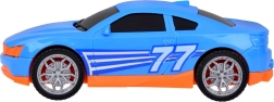 Set također uključuje sportski plavi automobil, koji savršeno odgovara na šlep službu. Cijela igračka izvedena je u realističnim bojama - žuta, siva, crvena i plava.