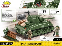 Sastavite legendarni tenk M4A1 Sherman u mjerilu 1:35 od 663 dijelova. Model nudi funkcionalne gusjenice, rotirajuću kupolu, podesiv top i otvarajuće poklopce. U paketu su 2 detaljne figurice, visokokvalitetni tiskani otisci te elementi okruženja za još autentičniju igru i izlaganje.