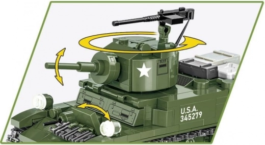 Model je izrađen od 511 čvrstih dijelova s visokokvalitetnim otiscima koji ne blijede. U kompletu su dvije figurice američkih tenkista s kacigama sa slušalicama i opremom. Set je u potpunosti kompatibilan s drugim markama konstruktorskih kockica, udovoljava sigurnosnim normama i oduševit će kolekcionare i mlade zaljubljenike u povijest.