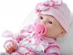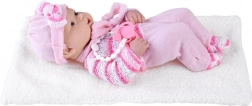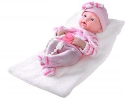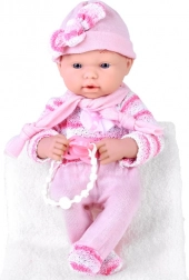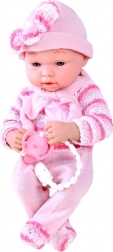Detaljno lice, nježne crte i ružičasti pleteni komplet s kapicom osiguravaju prirodan i blag izgled lutke koji potiče djecu na maženje i brigu.