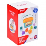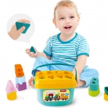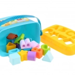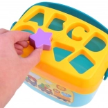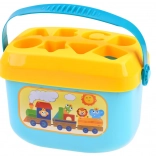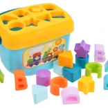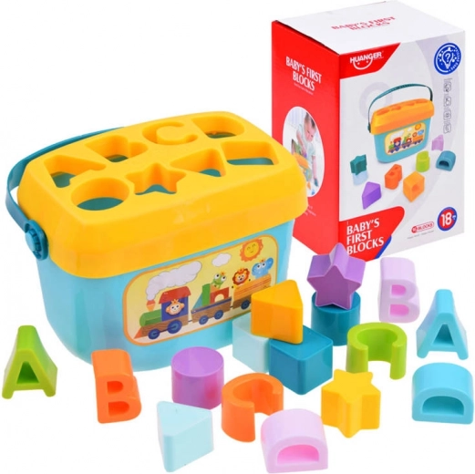 Ovaj pametni set spaja zabavu i učenje u jednom. Djeca ubacuju oblike u odgovarajuće otvore na poklopcu čime vježbaju logičko razmišljanje, razvrstavanje i vizualnu percepciju. Zahvaljujući šarenim elementima i slovima prirodno usvajaju osnove abecede i razlikovanja oblika.