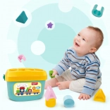 Žuti poklopac s izrezima vodi djecu pri dodjeljivanju ispravnih oblika. Potiče logičko razmišljanje i preciznost pokreta.