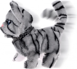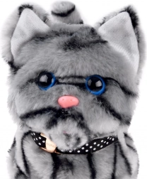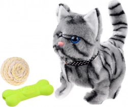 Preslatko sivo interaktivno mače osvojit će srce svakog djeteta. Nakon umetanja baterija počinje se kretati naprijed i nazad, mijaukati te micati glavom, njuškicom i repom. U kompletu su i dodaci za igru – mekana gumena kost i šarena loptica od špage. Ugodno mekani pliš idealan je za maženje i svakodnevnu igru.