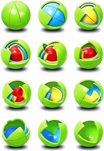 Ova pametno dizajnirana zagonetna kugla sastoji se od višebojnih slojeva i ukupno 21 dijela, koje je moguće lako rastaviti i ponovno sastaviti u kompaktan oblik. Zahvaljujući ugodnim bojama i glatkoj površini, njome je jednostavno rukovati i potiče na ponovno rješavanje.