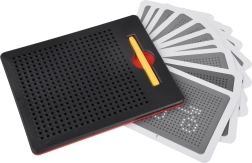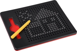 Ova kompaktna magnetna ploča idealna je za djecu i odrasle kao relaksacijsko i istovremeno edukativno pomagalo. Magnetni vrh privlači kuglice u otvore i stvara jasne točkice od kojih lako slažete slike, brojeve ili slova. Gotov motiv jednostavno obrišete pritiskom kuglica natrag – ploča je tako beskonačno višekratno upotrebljiva.