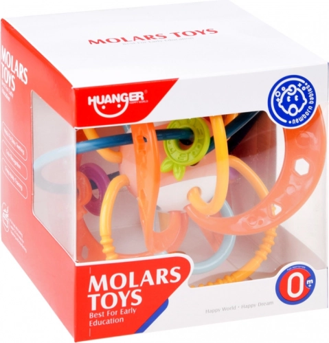 Lagana i sigurna senzorna grizalica s isprepletenim šarenim petljama potiče finu motoriku, umiruje tijekom nicanja zubića i potiče istraživanje različitih tekstura i oblika. Svi rubovi su zaobljeni, a materijali sigurni za djecu od 0 mjeseci.