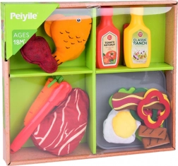 Od steaka i ribe preko jaja i slanine do rajčice, luka, salate, mrkve i paprika – set potiče upoznavanje namirnica i uravnotežene prehrane kroz igru.