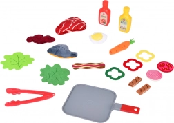 U pakiranju se nalaze praktični dodaci – tava i kliješta – te raznolik izbor namirnica: steak, riba, pileći file i trakice, jaje, slanina, kriške rajčice i luka, listovi salate, mrkva, paprike i dva umaka (kečap i univerzalni dressing). Zahvaljujući tome djeca mogu pripremati bezbroj „recepata” i vježbati kuharske uloge.