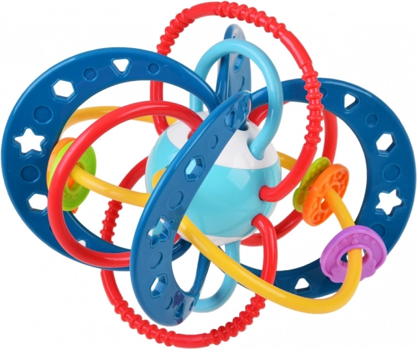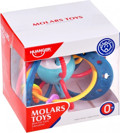 Šareno dječje grizalo sa zvečkalom potiče razvoj fine motorike i osjetila. Izrađeno je od sigurnih materijala s zaobljenim rubovima, nudi različite teksture i oblike za istraživanje, a nježne pastelne boje privlače bebinu pažnju.
