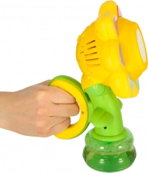 Ovaj dječji puhač mjehurića u obliku cvijeta idealan je partner za igranje u vrtu ili kod kuće. Automatsko ispuštanje mjehurića osigurava jednostavnu kontrolu, a pritiskom gumba odmah pruža zabavu.