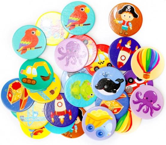 Set za igru sadrži 28 kartica u obliku kruga, koje su posebno dizajnirane za dječake. Pexeso igra nije samo zabavna, već i edukativna, jer pomaže razvijanju pamćenja i pažnje vaše djece.