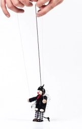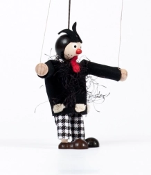 Lutka vrag Bruno pošten je češki proizvod iz zaštićene radionice koji će oduševiti djecu i odrasle. Zahvaljujući vodilicama lako ćete upravljati pokretnim rukama i razigrati lik u svakoj priči – od dobrog vragoljka do pravog nestaška. Kompaktna dimenzija bez vodilice (oko 12 cm) izvrsno se uklapa u male lutkarske scene i kućne predstave.