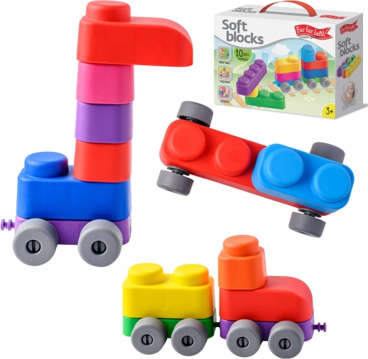 Mekane građevne kocke Far Far Land za djecu razvijaju kreativnost i motoriku. Sigurne za najmlađe, sadrže 10 dijelova i 8 kotačića. Idealne od 3 godine.