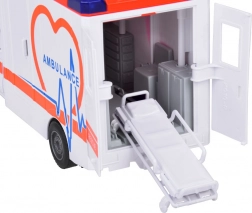 Ova realistično interaktivna hitna pomoć savršena je za djecu koja vole uzbudljive akcije i žele glumiti spasioce. Hitna pomoć opremljena je svjetlosnim i zvučnim efektima, koje aktivirate pomoću gumba na krovu, i kreće se zahvaljujući pogonu power friction - samo je potrebno povući je unazad i pustiti!