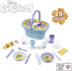 Dječja piknik košara STITCH donosi puno zabave kod kuće i na otvorenom. Zahvaljujući praktičnoj ručki djeca je lako nose u vrt, park ili dječju sobu. Set sadrži sve što mali domaćini trebaju za posluživanje – od šalica i tanjurića do pribora za jelo i stiliziranih “poslastica”.