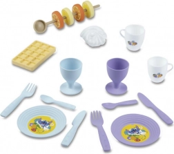 - 2× šalice, 2× čaše na stalku, 2× tanjuri, 2× žlice, 2× vilice, 2× noževi, vafl, puslica, ražnjić s voćem, 4× ploške voća