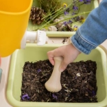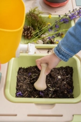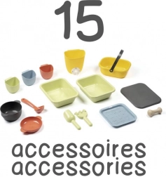 Sito, košarica, kutlača, grabljice, lopatica i druga oprema potiču kuhanje od blata, pijeska i cvijeća te podržavaju zajedničku igru.