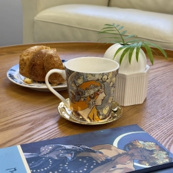 Otkrijte čar secesijske umjetnosti uz šalicu inspiriranu djelom ALFONS MUCHA – Zodijak. Precizan tisak s finim linijama, cvjetnim motivima i ženskim portretom pretvara svaku pauzu u estetski doživljaj. Šalica je izrađena od kvalitetnog porculana, ugodna je na dodir i dobro zadržava toplinu.