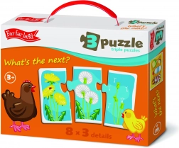 Otkrijte čaroliju Far Far Land puzzle trojke, koja djeci donosi ne samo radost u igri već i razvoj logičkog razmišljanja i prepoznavanje sposobnosti. Ovo pakiranje sadrži ukupno 8 slika, od kojih se svaka sastoji od tri dijela: